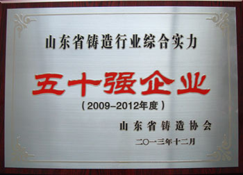 在集團公司的正確領導下,卓爾公司被山東省鑄造協會評選為“山東省鑄造行業綜合實力2009-2012五十強企業”,繼2006年、2008年後卓爾公司再度獲此殊榮,這是山東省鑄協對卓爾公司綜合實力的一種肯定,更是一種激勵!