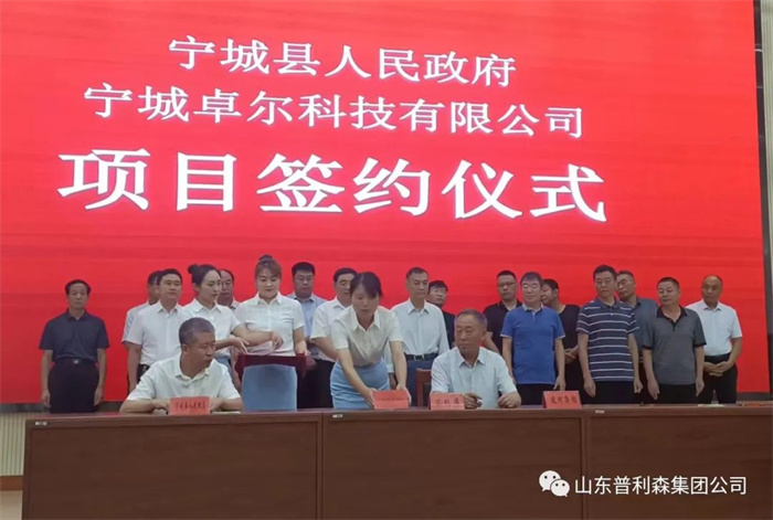8月26日,寧城卓爾科技有限公司成立簽約儀式暨寧城縣第三季度招商引資項目集中簽約儀式在內蒙古赤峰市寧城縣文化館隆重舉行;寧城卓爾科技有限公司作為寧城縣招商引資項目,寧城縣人民政府與寧城卓爾科技有限公司項目簽約儀式、與山東普利森集團及葫蘆島淩河集團戰略合作簽約儀式同時舉行。寧城縣委副書記、縣長張海軒,縣人大副主任撒占國,副縣長於利民,縣政協副主席魏利天,縣有關部門負責人及山東普利森集團董事長陳聲環,葫蘆島淩河集團董事長李田春,山東普利森集團董事、德州卓爾科技有限公司董事長王金華,山東普利森集團監事劉禮平等出席了簽約儀式。副縣長常建闖主持了簽約儀式。